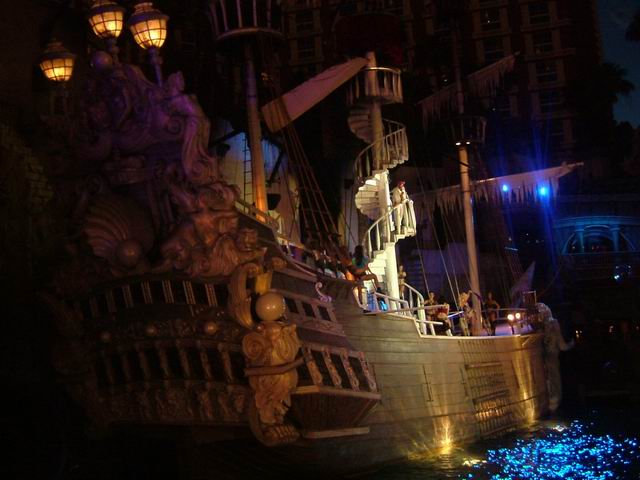 吃完饭就开始逛街,因为妈妈腿不太舒服,走来走去负担太重,就决定打车,一共是五个人,正在犹豫是不是需要2部taxi,发现当地有很多van,价格似乎与taxi是一样的,可以坐五个人,太方便啦!晚餐前跟大部队集合去吃饭,接着去金银岛酒店门口看海盗船表演,